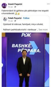 Sipas burimeve, i arrestuari Granit Paqarizi, i cili është djali i vëllait të kandidatit për deputet Fetah Paqarizi. Dyshimet lidhen me veprime të kundërligjshme që përfshijnë presion dhe ryshfet, të cilat dyshohet se kanë ndikuar në procesin e votimit.