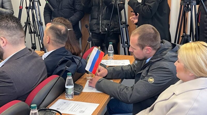 Mirëpo një asamblist i Komunës së Mitrovicës Veriore para vetes ka vendosur flamurin serb.