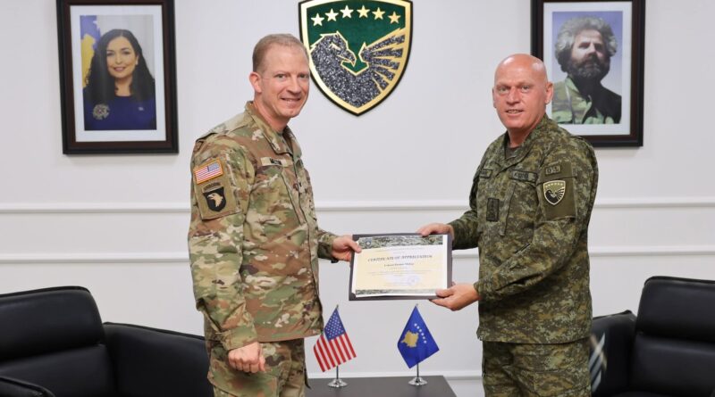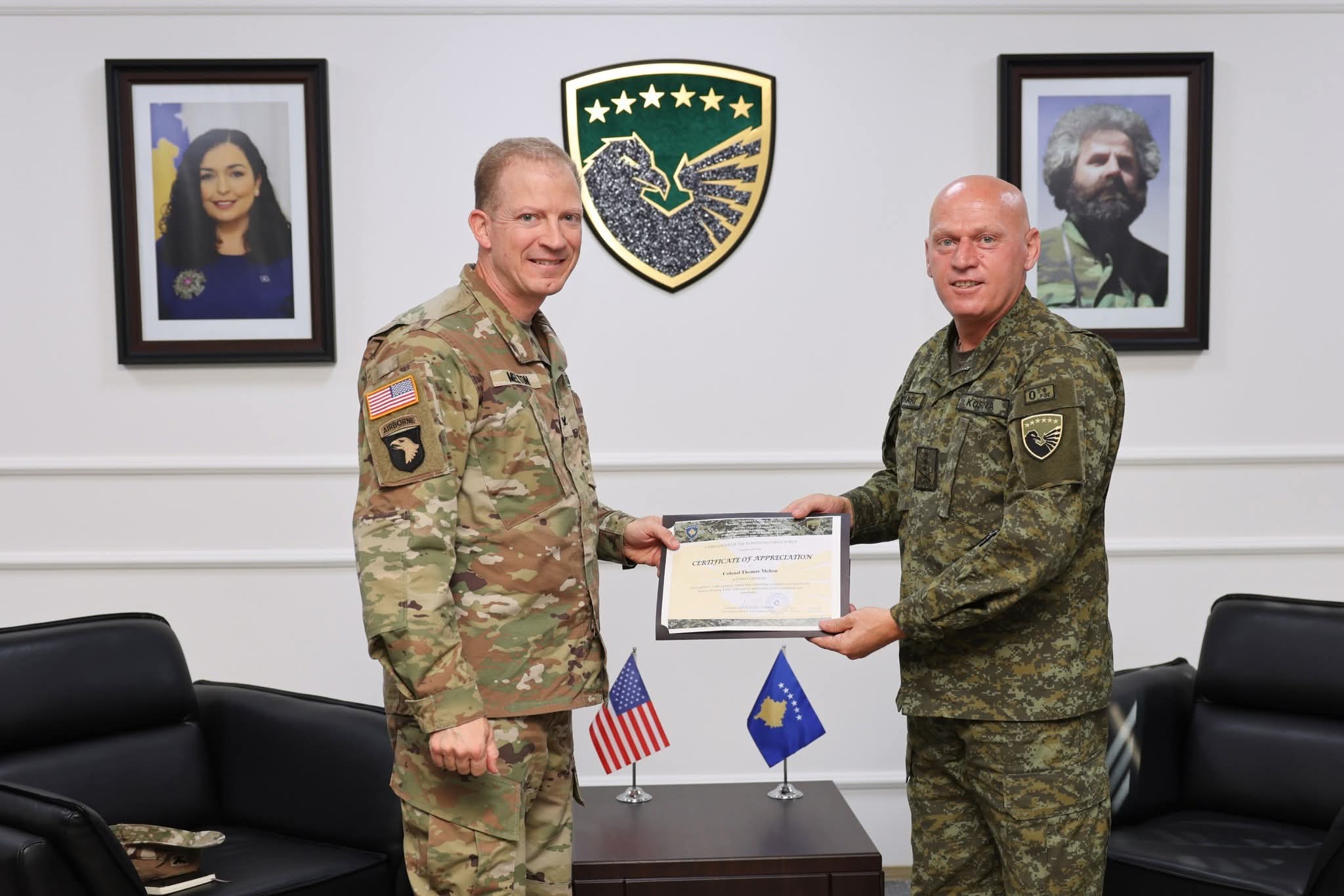 Komandanti i Forcës së Sigurisë së Kosovës, Bashkim Jashari priti në takim Komandantin e Organizatës për Menaxhimin e Trajnimit dhe Asistencë të Sigurisë të Ushtrisë së ShBA-së (SATMO), Thomas Melton.
