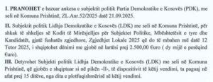 Sipas PZAP-së, kjo gjobë është rezultat i shkeljes së Kodit të Mirësjelljes për Subjektet Politike, Mbështetësit e tyre dhe Kandidatët, një dokument që synon të rregullojë sjelljen e pjesëmarrësve në procesin zgjedhor për të ruajtur një ambient demokratik dhe të qetë zgjedhor.