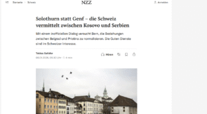 NZZ raporton se për vite me radhë nuk është zbuluar asgjë rreth këtyre bisedimeve joformale në mes të Kosovës dhe Serbisë, ndonëse ka pasur disa raportime nga vetë NZZ në vitin 2022 për takime politikanësh në qytetin e Solothurn në Zvicër. Edhe gazeta “Blick” ka raportuar në nëntor 2025 gjithashtu.