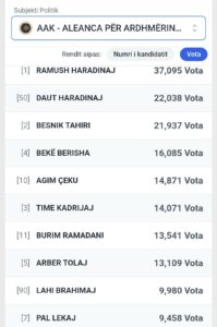 I treti renditet Besnik Tahiri, me 21,937. Bazuar në numërimin e deritashëm ulsen e deputetit do ta ketë edhe Bekë Berisha me 16.085 votave,