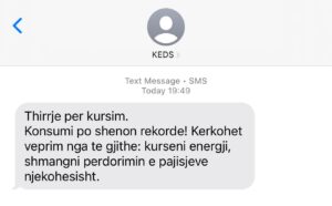 Edhe në këtë mesazh që qytetarët kanë pranuar nga KEDS, bëhet thirrje për kursim të energjisë, pasi që konsumi po shënon rekorde.