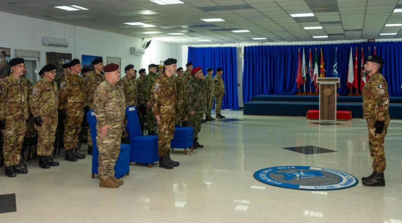 Komandanti i Komandës Rajonale-Perëndim (RC-W) të misionit të KFOR-it të udhëhequr nga NATO, kolonel Lorenzo Mangia, kryesoi ceremoninë e ndarjes së medaljeve për kontingjentin shumëkombësh, e mbajtur në Kampin Villaggio Italia në Pejë.