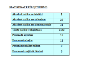 Nga policia është bërë e ditur edhe se kanë ndodhur 31 aksidente me dëme materiale, 20 me të lënduar, dhe 1 me fatalitet.