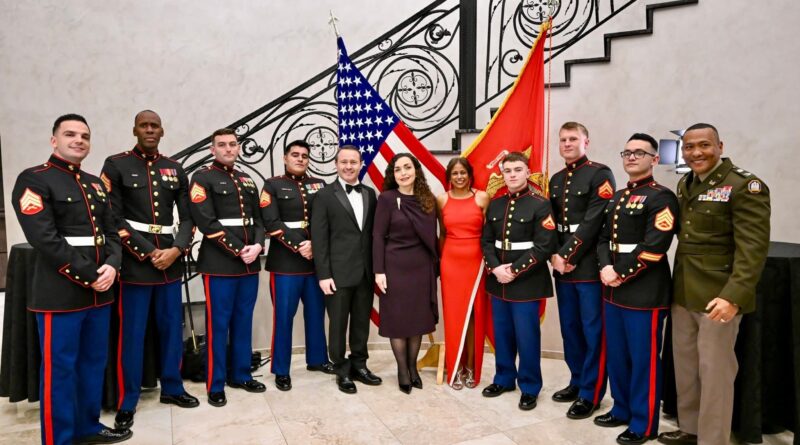 “Një mbrëmje e paharrueshme në ‘Marines Ball’, së bashku me aleatët tanë të përhershëm dhe në nderim të marinsave amerikanë që kanë qenë krah nesh në ditët më vendimtare të vendit tonë, dhe që vazhdojnë të kontribuojnë për paqe, në Kosovë dhe kudo në botë”.