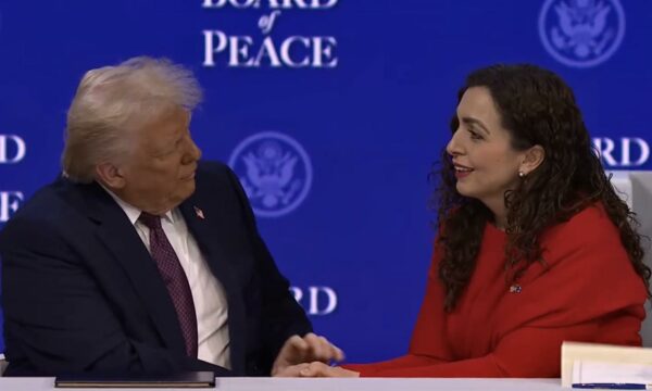 Presidentja e Kosovës, Vjosa Osmani, ka ndarë një foto në profilin e saj në Facebook, me presidentin e Shteteve të Bashkuara të Amerikës, Donald Trump, nga momenti i nënshkrimit të kartës së Bordit të Paqes.