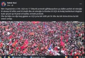 “Nën Organizimin e OVL-UÇK me 17 Shkurtë protestë gjithëpopullore pa dallim partish në mbrojtje të vlerave të luftës sonë të shejtë dhe në mbrojtje te Krerëve të UÇK-së. Andaj bashkohuni shqiptar kudo që jeni qe të jem së bashku në ketë protestë. Dhe t’ia bëjmë me dije kësaj gjykate se UÇK-ja ka bërë luftë për liri dhe s’ka bërë krime. Krime ka bërë vetëm Serbia”, ka shkruar ai.