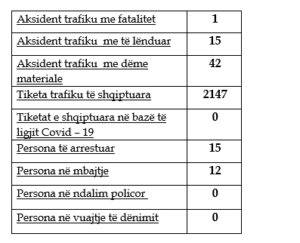 Në 24 orët e fundit janë raportuar 42 aksidente trafiku me dëme materiale, 15 aksidente trafiku kanë përfunduar me të lënduar, kurse një aksident përfundoi me fatalitet