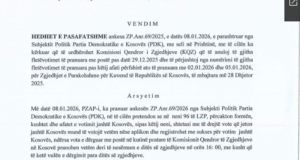 Paneli Zgjedhor për Ankesa dhe Parashtresa (PZAP) ka hedhur poshtë si të pasafatshme ankesën e Partisë Demokratike të Kosovës (PDK), e cila kishte kërkuar anulimin e fletëvotimeve të pranuara me postë pas datës 29 dhjetor 2025, në kuadër të zgjedhjeve të parakohshme për Kuvendin e Kosovës.
