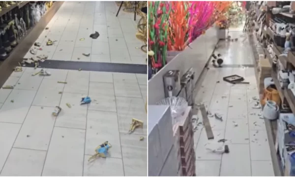 Pas tërmetit në Kosovë, një qytetar nga Prizreni ka raportuar për dëme materiale në një market, ku si pasojë e lëkundjeve janë rrëzuar produkte nga raftet brenda tij.