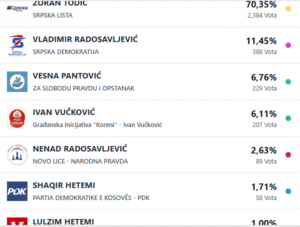 Izmir Zeqiri i PDK’së në Zubin Potok: 190 vota ose 4.69 për qind;