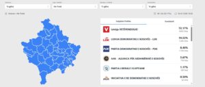 Në këto rezultate prin Lëvizja Vetëvendosje me 72.17 për qind të votave, apo gjithsej 9,852 vota.